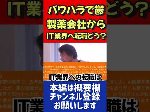 パワハラで鬱。製薬会社からIT業界への転職どう?【ひろゆき切り抜き】 #ひろゆき切り抜き #ひろゆき #論破 てんしょくTV2024.05.06パワハラで鬱。製薬会社からIT業界への転職どう?【ひろゆき切り抜き】 #ひろゆき切り抜き #ひろゆき #論破