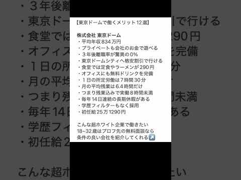 東京ドームで働くメリットが素晴らしかった!#優良企業 #転職 #転職したい #転職成功 #就活 #第二新卒 #shorts てんしょくTV2025.09.14東京ドームで働くメリットが素晴らしかった!#優良企業 #転職 #転職したい #転職成功 #就活 #第二新卒 #shorts