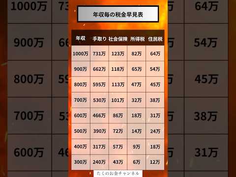年収毎の税金早見表#投資#転職#貯金