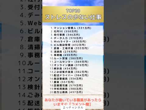 TOP20ストレスの少ない仕事#投資#転職#貯金