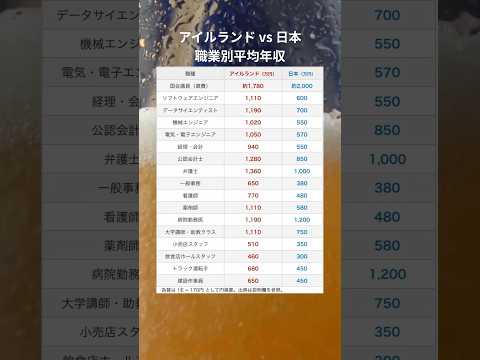 アイルランド vs 日本|職種別「平均年収」比較(万円・概算)