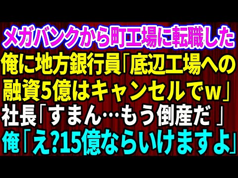 【スカッと】メガバンクから町工場に転職した俺に地方銀行員「底辺工場への融資5億はキャンセルでw」社長「すまん…もう倒産だ」→俺「え?15億ならいけますよ」【感動する話】【総集編】