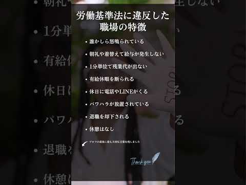労働基準法に違反した職場の特徴 #shorts #名言 #転職 #メンタル #自己啓発 てんしょくTV2026.02.16労働基準法に違反した職場の特徴 #shorts #名言 #転職 #メンタル #自己啓発