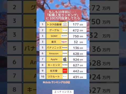 転職人気ランキングに100万投資せてたら#投資#転職#貯金