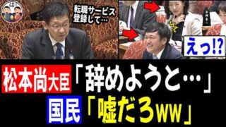 【爆笑国会ww】松本尚大臣「辞めようと思って転職サービスを…」国民「嘘だろwww」